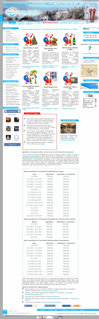 Website development and promotion for the Santa Claus service in St. Petersburg.
