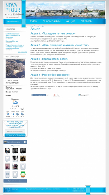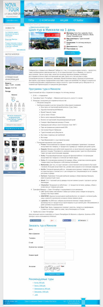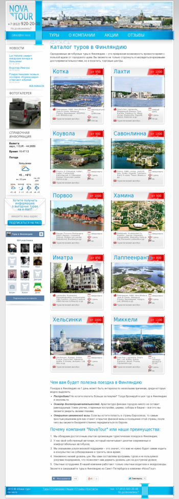 Web-development for the «NovaTour» company, which deals with tours to Finland from St. Petersburg.